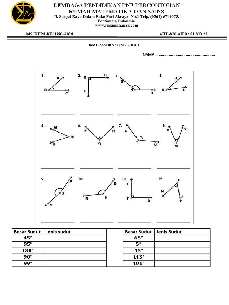 Jenis Jenis Sudut Dan Cara Mengukurnya Kelas 4 Sd Osnipa